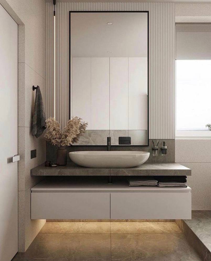 Полностью с полного нуля сделали эксклюзивный ремонт и отделку в двухкомнатной квартире с детской комнатой. Дизайн реализовали в нежных тонах и в стиле минимализм с большими окнами и двухуровневыми потолками. Для санузла выбрали цвета белого и темных тонов под камень с дизайнерской техникой.