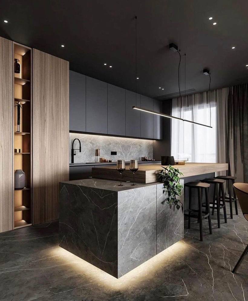 • Обсуждение комфортной планировки и составление плана – например отделка под кирпич, с фартуком или без, освещение точечное из нескольких светильников или с одной люстрой